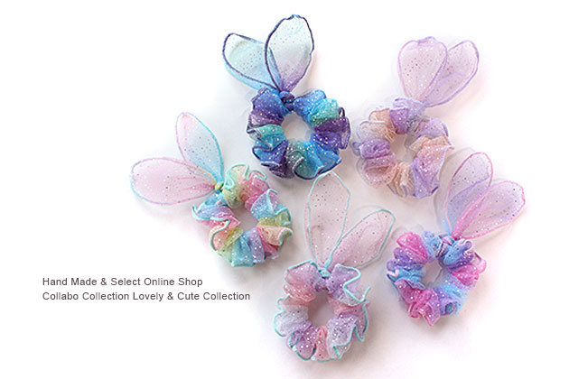 スペースカラー◎うさ耳付きミニドットチュールデザイン キッズ ヘアゴム 子供 髪留め ヘアアクセサリー シュシュ ゆめかわ 髪飾り 宇宙 うさぎ