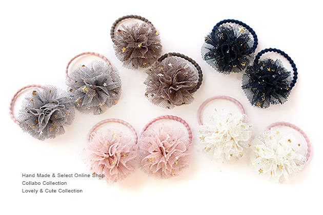 MIX星柄チュールボンボン&ベロアりぼんデザイン キッズ 子供 ヘアゴム ヘアアクセサリー チュール 春夏 可愛い 髪飾り りぼん 大人気