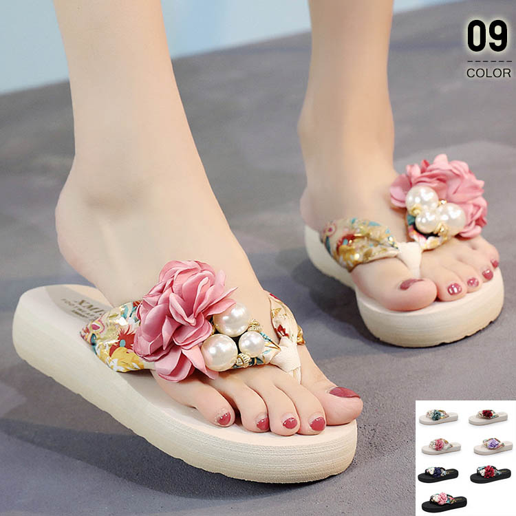 スリッパ サンダル レディース ジュニア キッズ ビーチサンダル 花柄 黒リボン 子供用 女の子 ぺたんこサンダル ミュール ドット サマー 水玉 可愛い