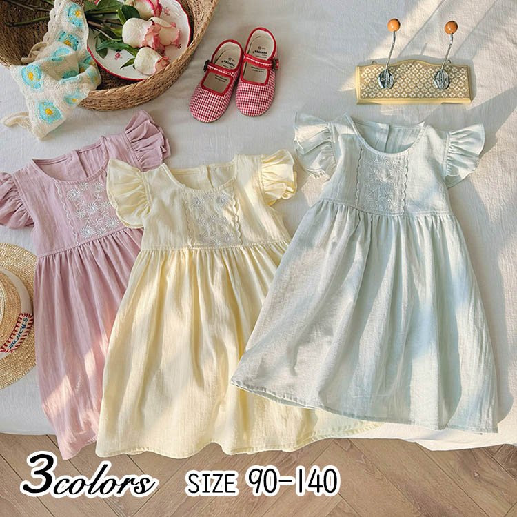 ワンピース 子供服 子ども服 こども服 キッズ 女の子 ワンピース シャツ フリル フレア ギャザー 半袖 無地 春 夏 90 100 110 120 130 140