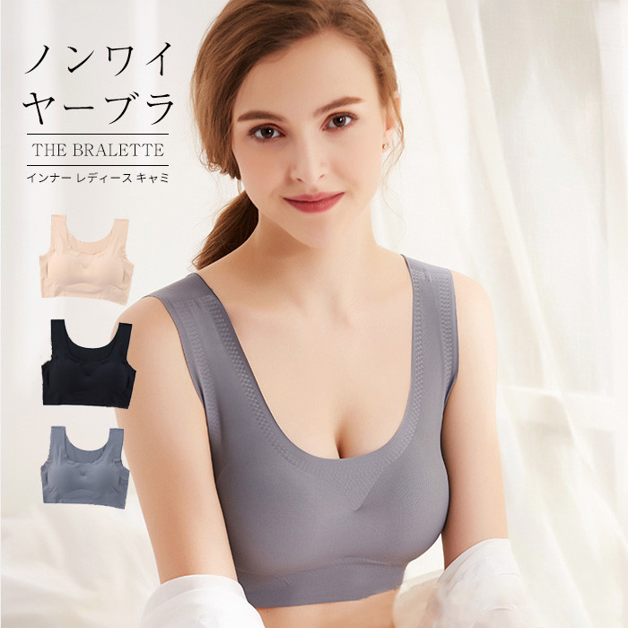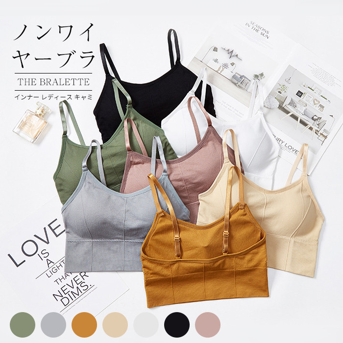 シンプルだからデイリー使いしやすい レディース キャミソール ブラキャミ スポーツブラノンワイヤー レディース リブ素材