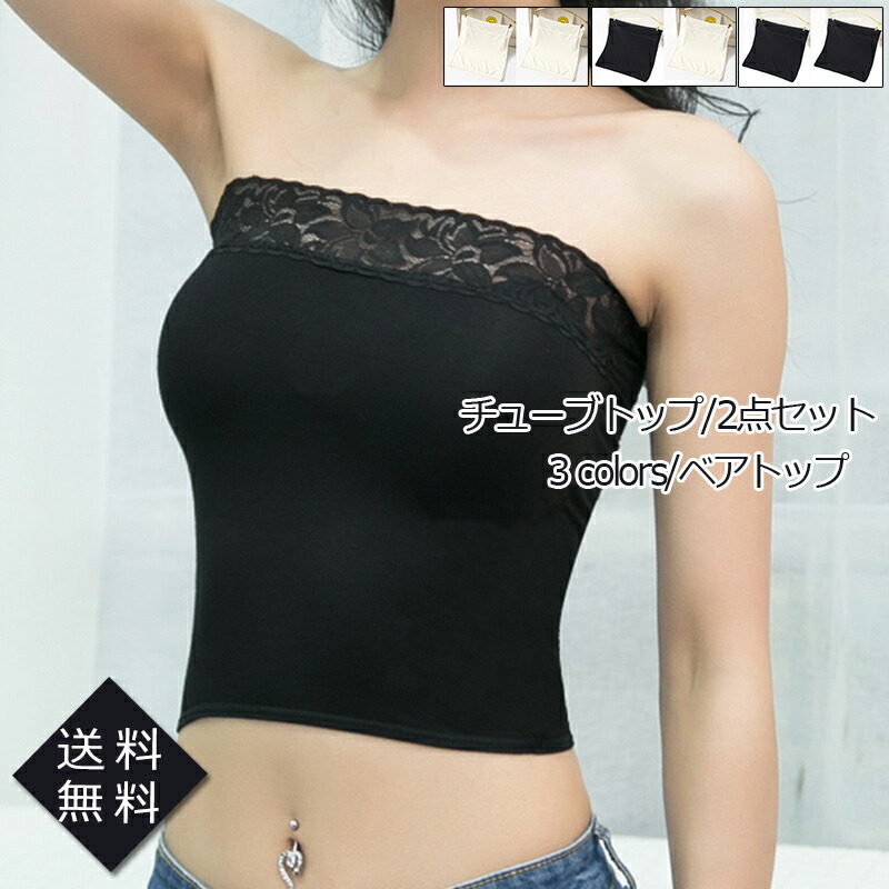 ベアトップ レディース 2点セット チューブトップ ブラカバー レース付き カップなし 肩紐なし 落ちない シンプル 柔らかい インナー おしゃれ