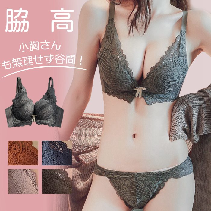 ノンワイヤーブラ 美胸 美背 レース 総レース 盛れる ノンワイヤー ブラジャー ショーツ ブラショーツ セット ランジェリー インナー レディース セクシー 育乳 脇高