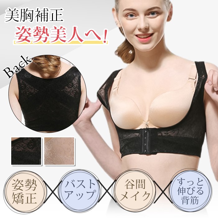 美胸補正 姿勢美人 肩こり予防 総レース バストアップ 背筋サポート 谷間補正 形状記憶 矯正下着 補正下着 レディース 女性 産後 ダイエット 体型補正