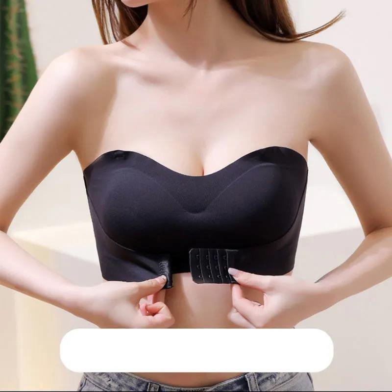 ストラップレスブラ 落ちない 谷間 バストアップ 脇高 チューブトップ ノンワイヤー ブラジャー 肩紐なし 盛れる ノンワイヤーブラ フロントホック
