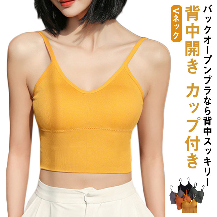 ブラトップ バックオープンブラトップ インナー 開き 背中 ブラジャー キャミソール カップ付き バックオープンブラ ノーワイヤー キャミ ブラジャー ブラ リブ ブラキャミ 背中見せ 背中開き 下着