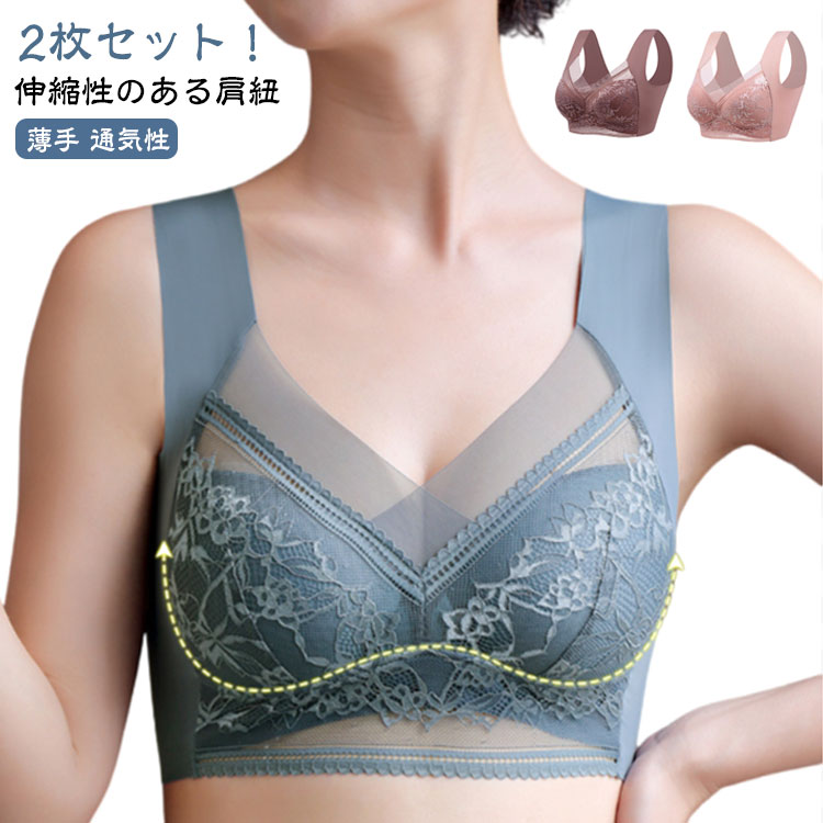 レースブラジャー ノンワイヤー ブラ ナイトブラ 授乳ブラ 脇高 谷間 大きいサイズ おしゃれ かわいい 育乳 夏用 春 秋 脇肉補正
