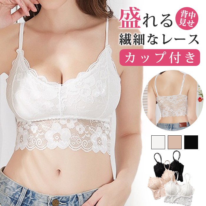 タンクトップ 胸を小さく見せるブラ 胸元スッキリ 着痩せブラ 締め付けない 痛くない レース ノンワイヤーブラ 伸縮性