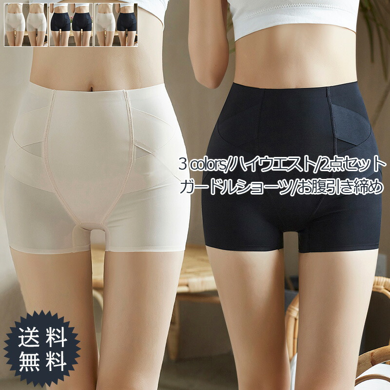 ガードルショーツ レディース お腹引き締め 無地 ハイウエスト 2点セット ボクサーパンツ 補正下着 産後 薄手 カジュアル インナー きれいめ おしゃれ