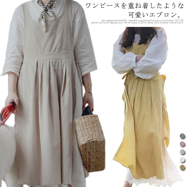 エプロン ワンピース 綿100% リネン風 レトロ エプロンドレス おしゃれ レディース 北欧 保育士 絵画 花屋 カフェ お姫様 エプロン 母の日