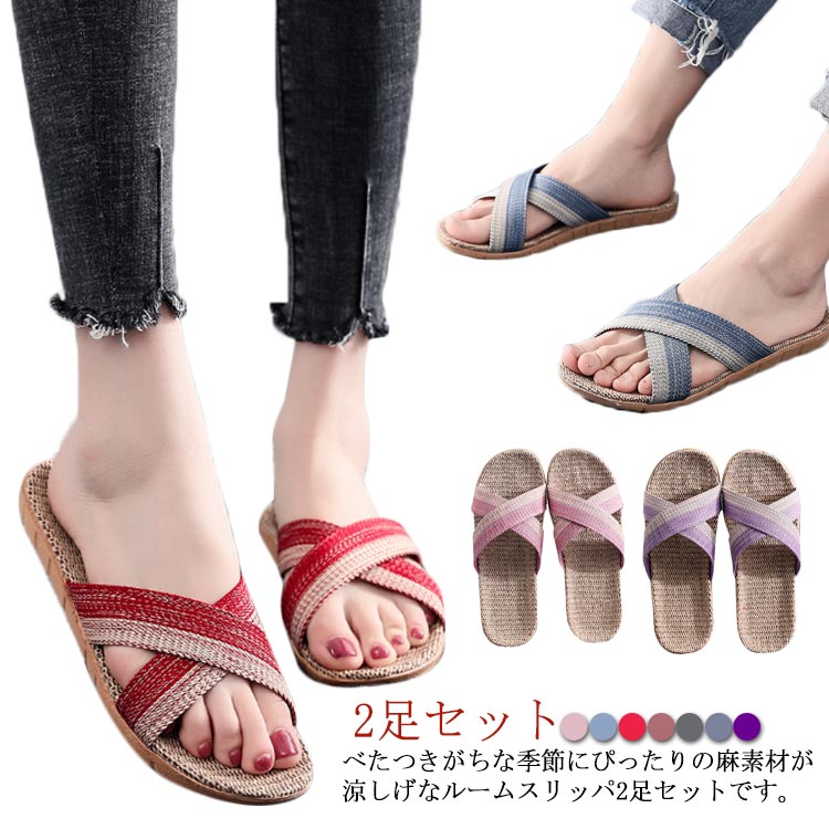 7色選べる スリッパ 2足セット 軽い お風呂 はきやすい 麻 ルームスリッパ クロス 部屋用 来客用 洗える