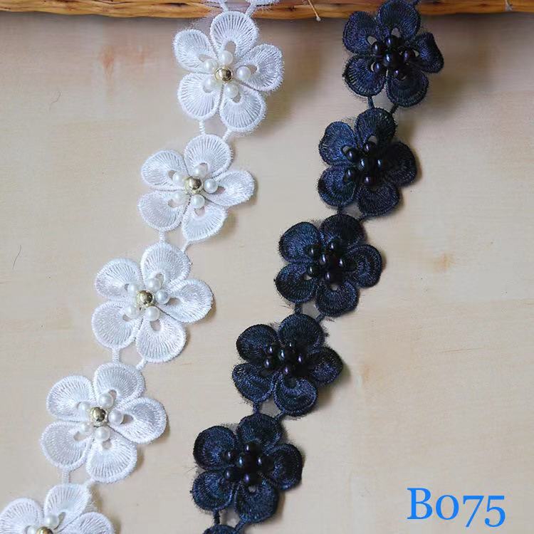 レースリボン 花柄 ハンドメイド ビーズ付き 手芸 手作り ウェディングドレスパーツ 刺繍 2m B075