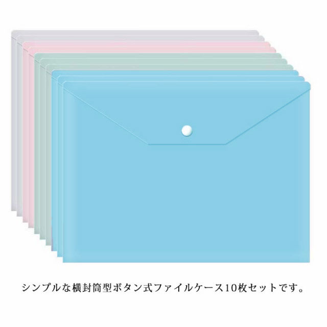 ファイルケース 10枚入り 4サイズ ドキュメントホルダー レシートホルダー シンプル 整理収納 文房具 事務用品 オフィス用品 ボタン式 防水 ファイル袋 厚手 資料ケース 封筒型 大容量