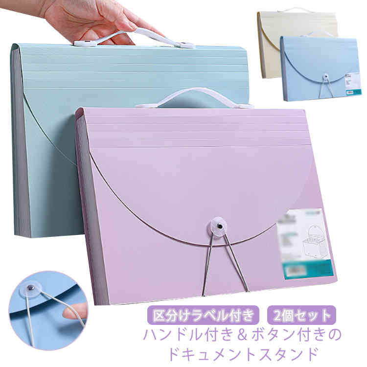 ドキュメントファイル ボタン付き ファイルバッグ ファイルスタンド 持ち手 書類 ファイル ケース 文房具