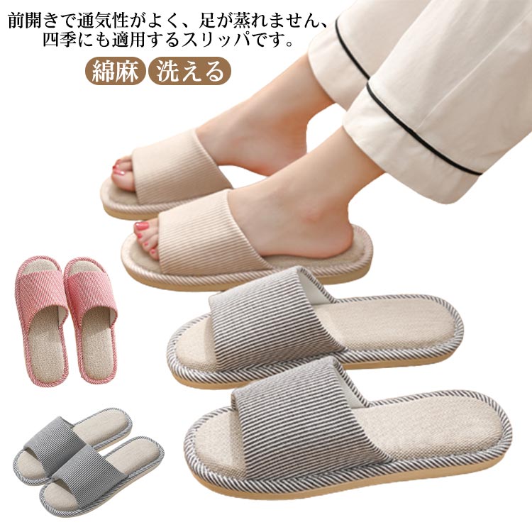 レディース 亜麻 スリッパ 前開き メンズ カップル 室内履き 綿麻 四季用 春 夏 滑り止め リネン 軽量 四季用 シンプル 可愛い ルームシューズ 来客用 部屋用 サンダル ギフト 抗菌 防臭 洗