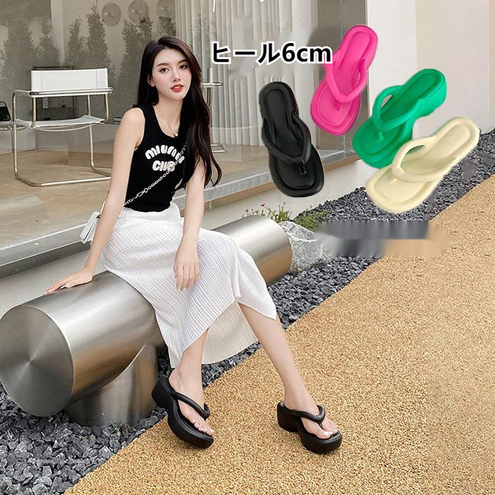ビーチサンダル 軽量 軽い 歩きやすい レジャー リゾート レディース 履きやすい 海 ビーチ カジュアル シンプル 素材 靴 厚底トングサンダル 柔らか 3.5センチヒール 夏 韓国ファッショ