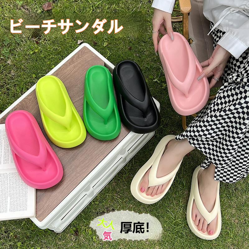 ビーチサンダル 軽量 軽い 歩きやすい レジャー リゾート レディース 履きやすい 海 ビーチ カジュアル シンプル EVA素材 靴 厚底トングサンダル 柔らか 3.5センチヒール 夏 韓国ファッショ