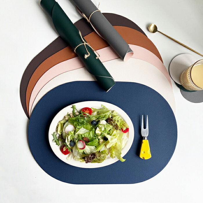 ランチョンマット 北欧 オーバル レザー 傷防止 敷物 テーブルクロス インテリア ランチマット ブラック ワインレッド 食卓 プレースマット ギフト プレゼント ブラウン 撥水加工 おしゃれ 水