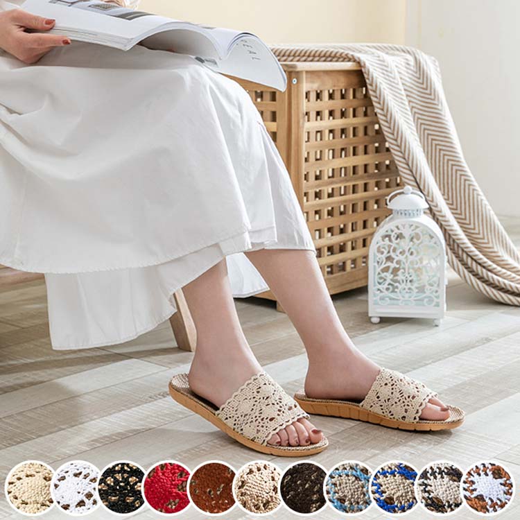 ルームシューズ 室内 スリッパ サンダル レース レディース 麻 おしゃれ 洗える 可愛い 春 夏用 涼しい 蒸れない 通気 ベランダ 海 ビーチ 来客 ビーチサンダル リビング