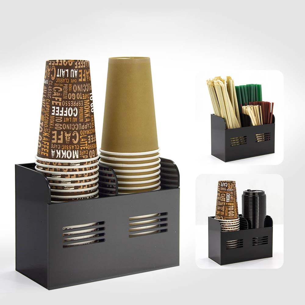 紙カップと蓋収納 バーカウンター収納ラッ コンビニ、ビュッフェ、オフィスなど適用 アクリル製 カップディスペンサー コーヒ調味料 シュガー ストロー