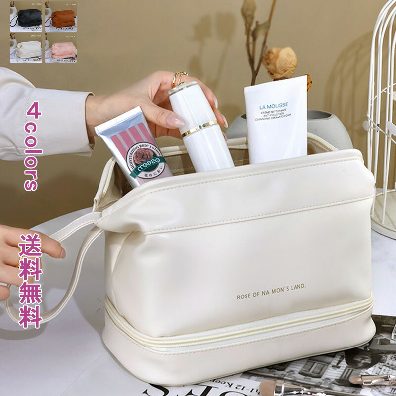 メイクポーチ 化粧ポーチ 大容量 持ち歩き コンパクト 2段構造 自立 大容量 手提げ エゴ ロゴ 大きめ 旅行用 収納 バッグ コンパクト かわいい コスメポーチ 仕切り ブラシ入れ コスメ 軽い