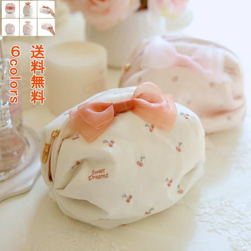 コスメポーチ 化粧ポーチ 大容量 持ち歩き コンパクト レディース ポーチ 刺 小物入れ コスメ レース チャーム ミニバッグ プレゼント ギフト チェリー いちご ホワイト ピンク 小さめ かわい