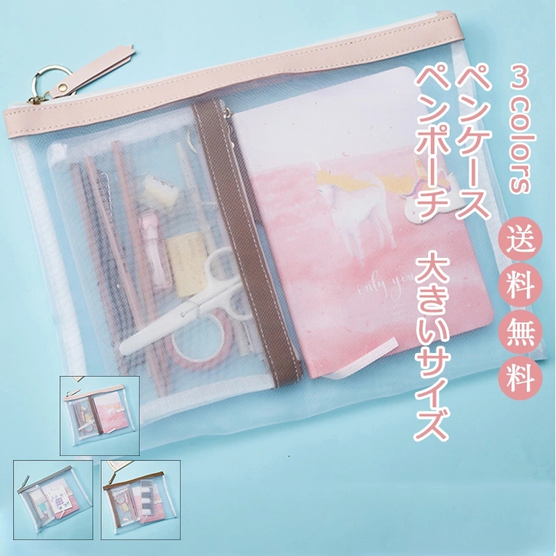 入荷済 ファイルケース クリアペンケース 化粧ポーチ 小さめ 大きめ 機能的 メイクポーチ筆箱 大容量