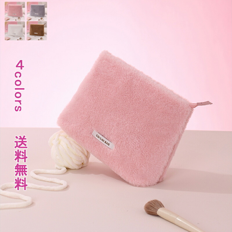 ペンポーチ 化粧ポーチ 大容量 持ち歩き コンパクト カンゴール マルチポーチ ケアポーチ 収納 バッグ ファー ふわふわ 秋冬 フラット 出張 旅行 かわいい きれい 機能的 携帯用 軽量 無地 シ