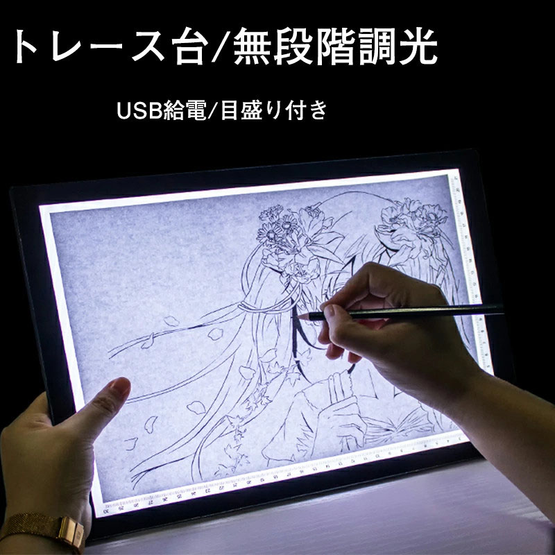 トレース台 ライトボックス LED A4サイズ トレーサー 模写台 超薄型 ライトテーブル 無段階調光 USB給電式 USBケーブル