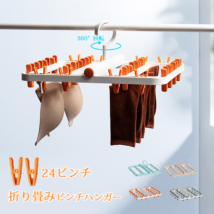 ピンチハンガー 折りたたみ式 洗濯物干し 靴下ハンガー 24ピンチ 洗濯ハンガー 防風設計 360度回転可 小物まとめ干し