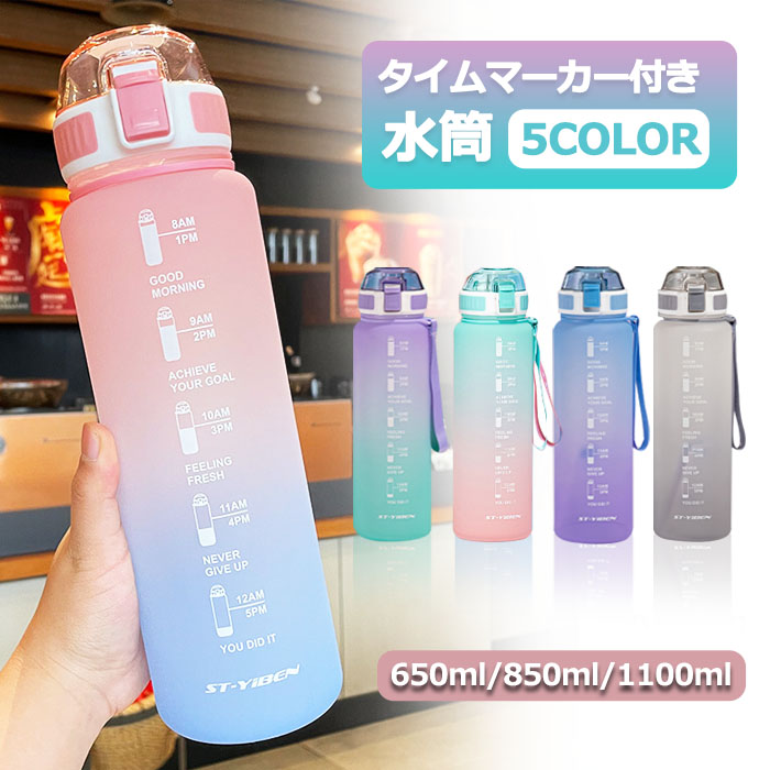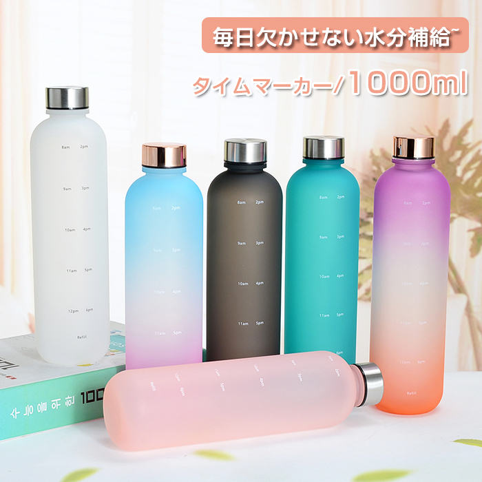 水筒 1 目盛り付き 水筒 ストロー 1リットル ウォーターボトル タイムマーカー 携帯便利 通学通勤