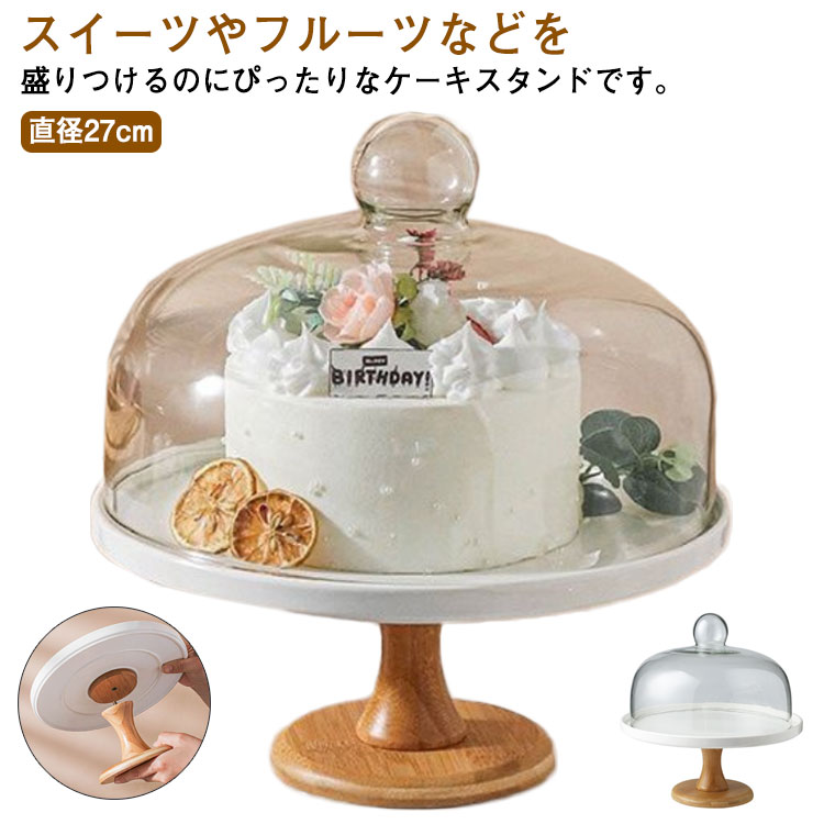 ケーキスタンド 木 ガラス フタ付き クリスマス 誕生日 ケーキ デザート ディスプレイ おしゃれキッチン用品 食器 調理器具 食器 カトラリー グラス 食器 ケーキスタンド ケーキドーム