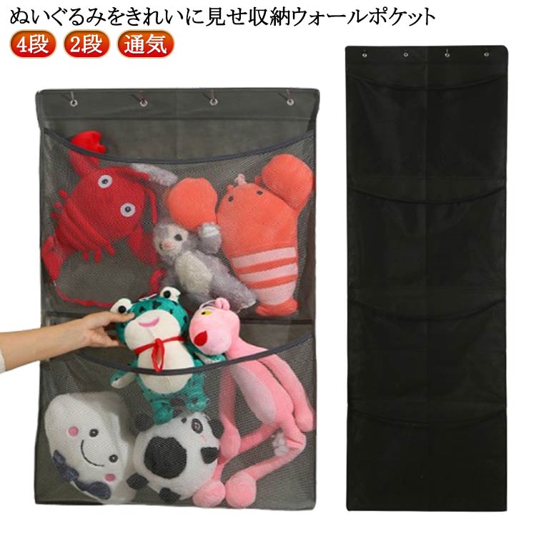 ぬいぐるみウォールポケット メッシュ 玄関 収納ラック ドア掛け収納式ポケット ドア掛け 吊り下げ収納 壁掛け収納ポケット マルチポケット 省スペース おもちゃ 見せる収納 整理整頓