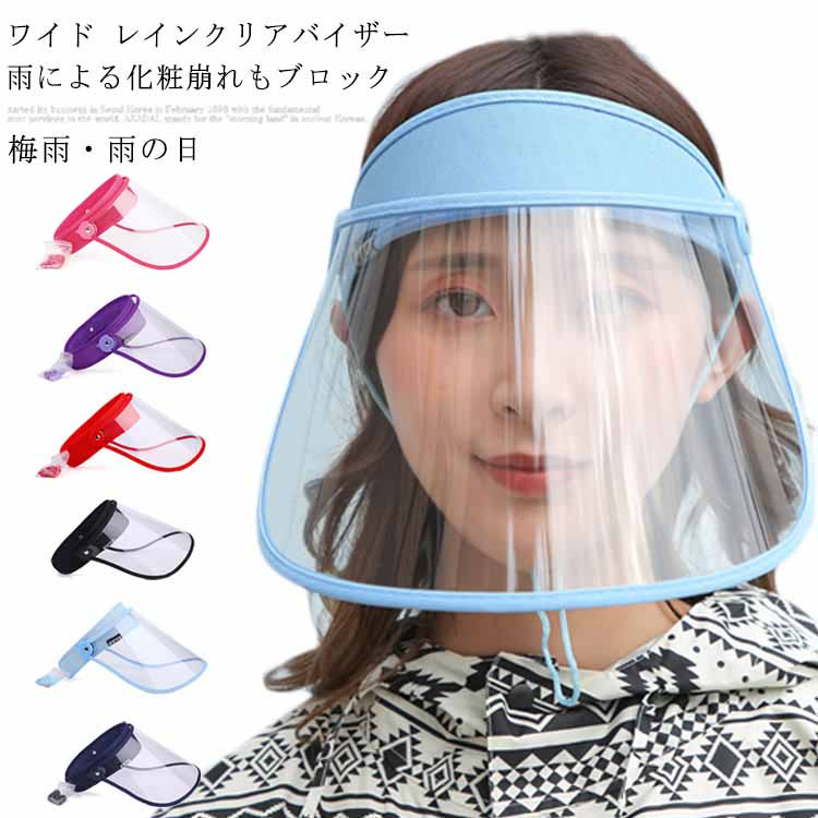 雨の日顔が濡れないレインバイザー 雨 ズレない 可動式でクリアバイザー 視界良好 ポンチョにホックでセット