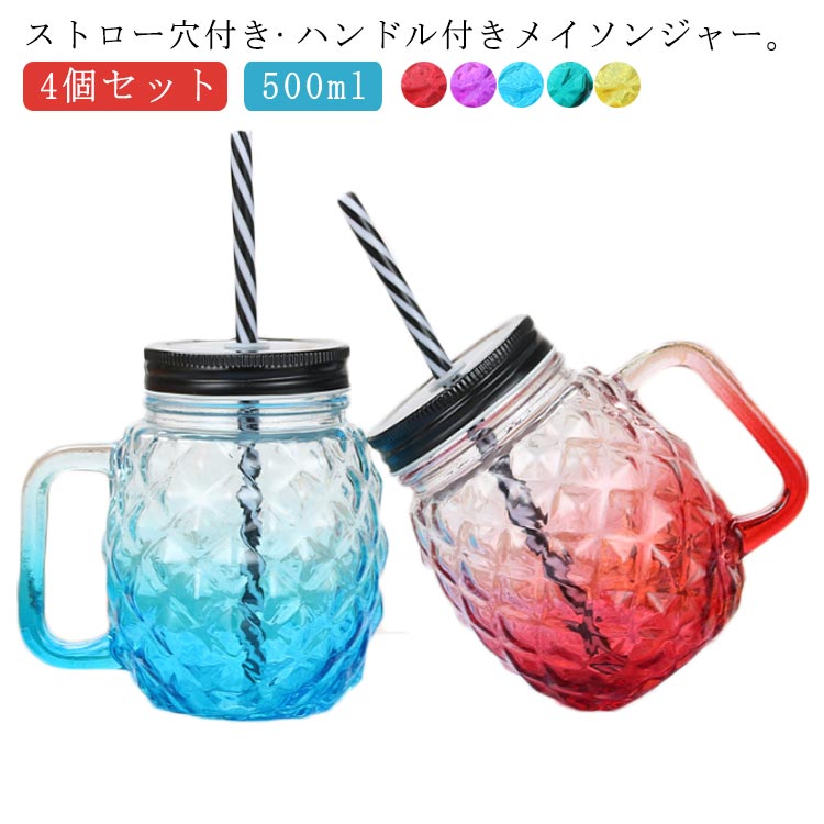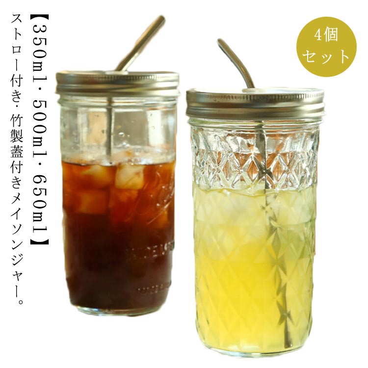 メイソンジャー ドリンクボトル ストロー差し フタ付き タピオカ 飲料 牛乳 スムージー グラスキッチン用品 食器 調理器具 食器 カトラリー グラス グラス タンブラー タンブラー