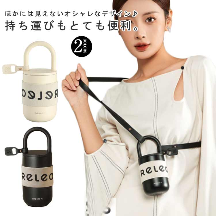 オシャレで持ち運び便利 ショルダーストラップ付き タンブラー 水筒 直飲み ステンレス 保温 保冷 400 300 コーヒー 紅茶 オシャレ ボトル ハンドル付き