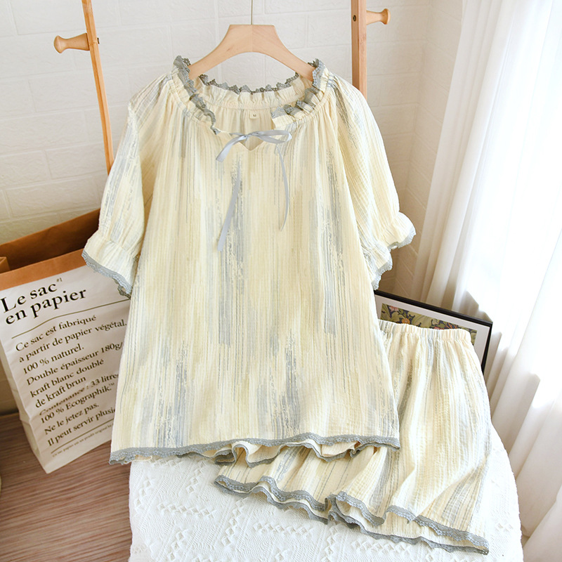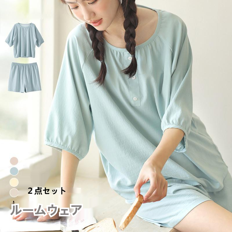 パジャマ ルームウェア 部屋着 レディース ガーゼ 綿 セットアップ ペアパジャマ リラックスウェア 無地 おしゃれ 上下セット 春夏 半袖 寝巻き パンツ 寝間着 カジュアル 修学旅行 外出 リラッ