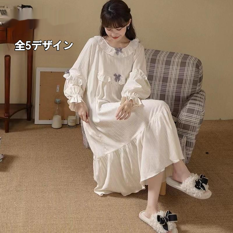 パジャマ レディース 春 長袖 婦人 全5デザイン 長袖 ルームウェア スカート パジャマ 上品 かわいい 部屋着 春夏 前開き ルームウェア パジャマ ワンピース --12872-