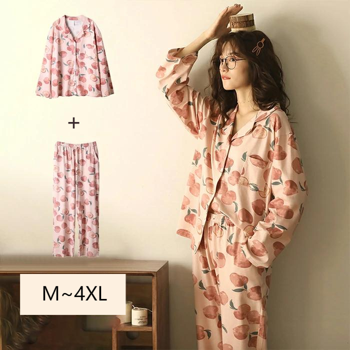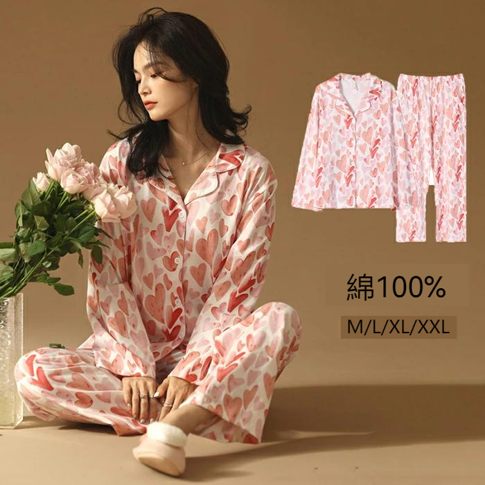 パジャマ ルームウェア レディース 上下セット プレゼント ペアルック 長袖 部屋着 ナイトウエア 大きいサイズ バレンタイン 女性 M L XL XXL クルーネック ins 春夏秋 韓国風 シンプ