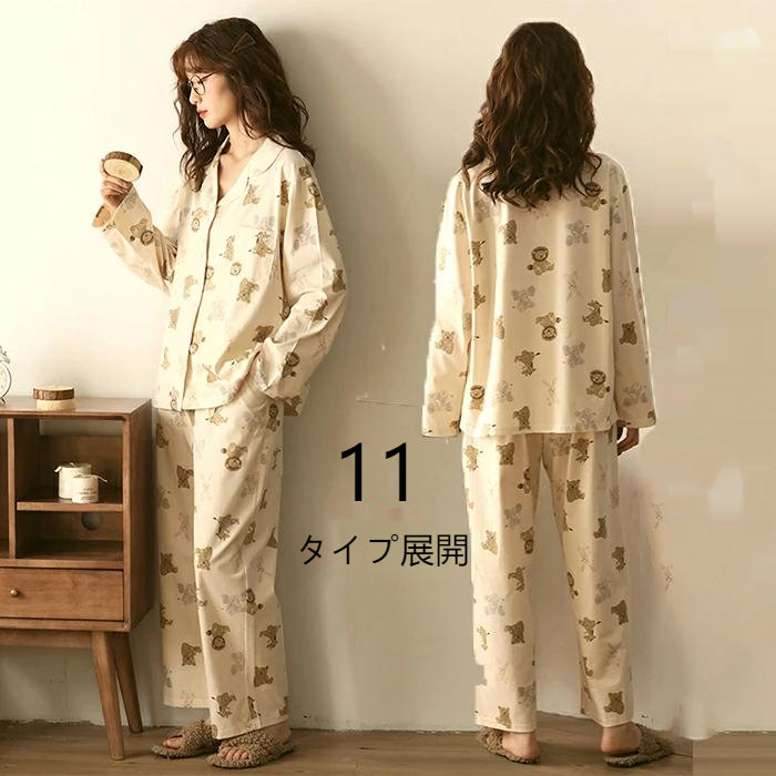 パジャマ レディース 春 秋 夏 上下セット ルームウェア アップ オシャレ 上品 部屋着 長袖 フリーサイズ 全6カラー 北欧風 ルームウェア お揃い c-shuiyi-12660-gg