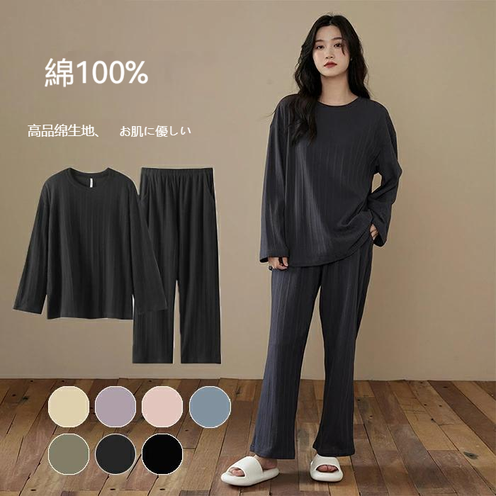 パジャマ ルームウェア レディース 韓国風 シンプル カジュアル ペアルック 長袖 部屋着 ナイトウエア バレンタイン 上下セット 大きいサイズ プレゼント クルーネック 春夏秋 女性 ~4