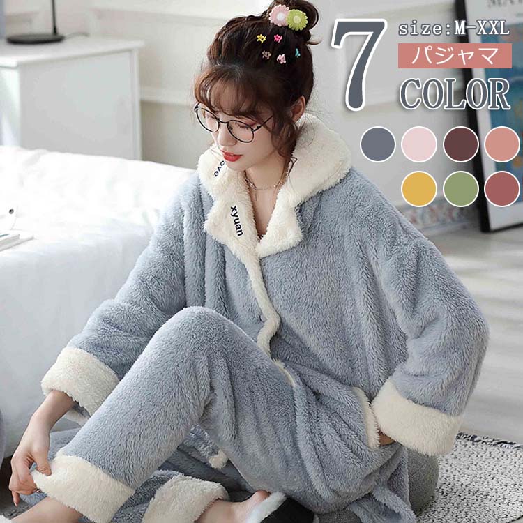 パジャマ レディース セットアップ 長袖 ナイトロープ モコモコ 暖かい 厚手 韓国風 寝巻き 上下セット ルームウェア 冬 フランネル 部屋着 大きいサイズ 可愛い ナイトウェア