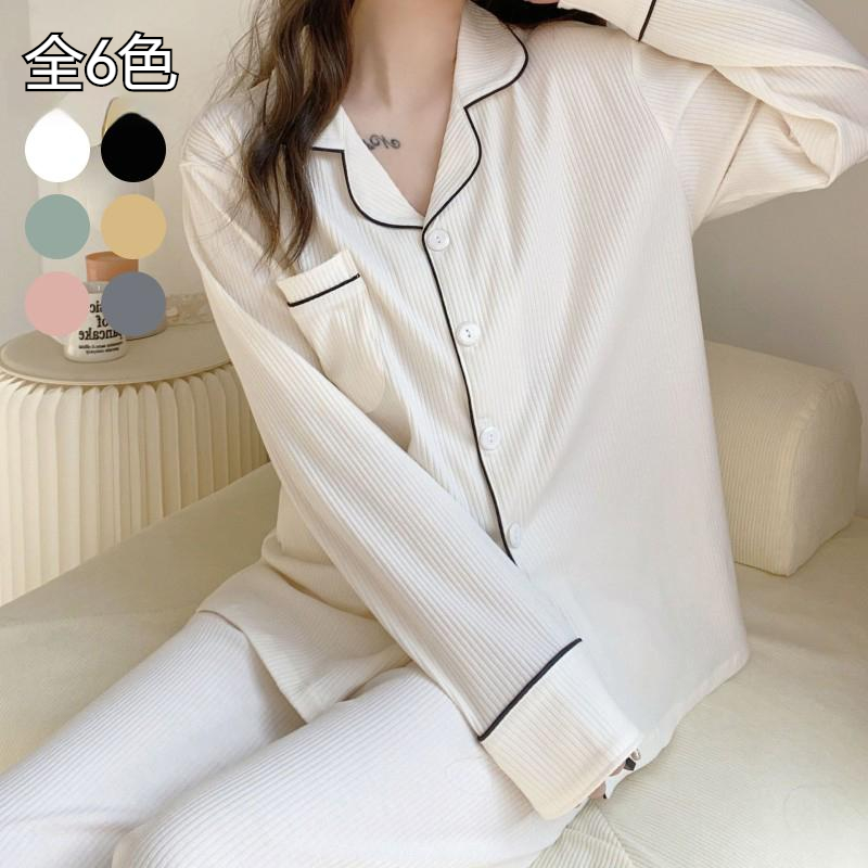 パジャマ レディース 春 全6カラー レディース ルームウェア 上下セットアップ 前開き パジャマ 上品 かわいい 長袖 長袖 前開き ルームウェア パジャマ お揃い 婦人 部屋着 春夏 -