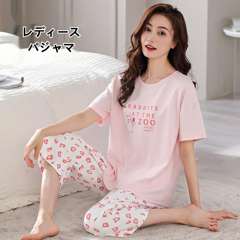 パジャマ レディース 夏 半袖 七分パンツ 女の子 パジャマ お揃い レディース ルームウェア 上下セットアップ カジュアル ルームウェア 全8デザイン シンプル オシャレ リラックスウェア パジャマ