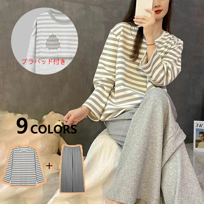 パジャマ ルームウェア レディース 春夏秋 韓国風 シンプル カジュアル ペアルック 長袖 部屋着 ナイトウエア バレンタイン 上下セット 大きいサイズ プレゼント クルーネック ins 女性 グレー