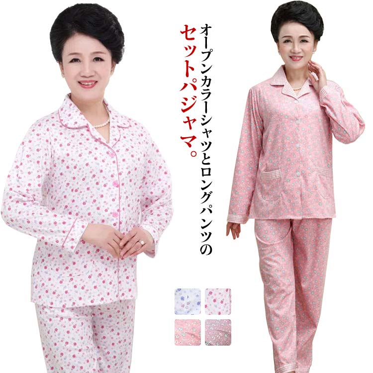 パジャマ 小花柄 上下セット 母 ママ ナイトウェア ロングパンツ 肌着インナー 下着 ナイトウェア レディース ナイトウェア ルームウェア パジャマ
