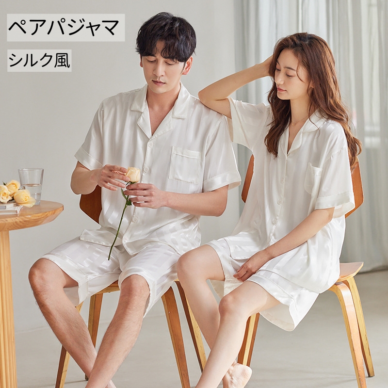 ペアパジャマ シルク風 シルク ペアルック パジャマ 寝間着 プレゼント メンズ パジャマ おしゃれ 半袖 結婚祝い プレゼント おしゃれ おすすめ 贈り物 ペア リゾート ゆったり 通気性