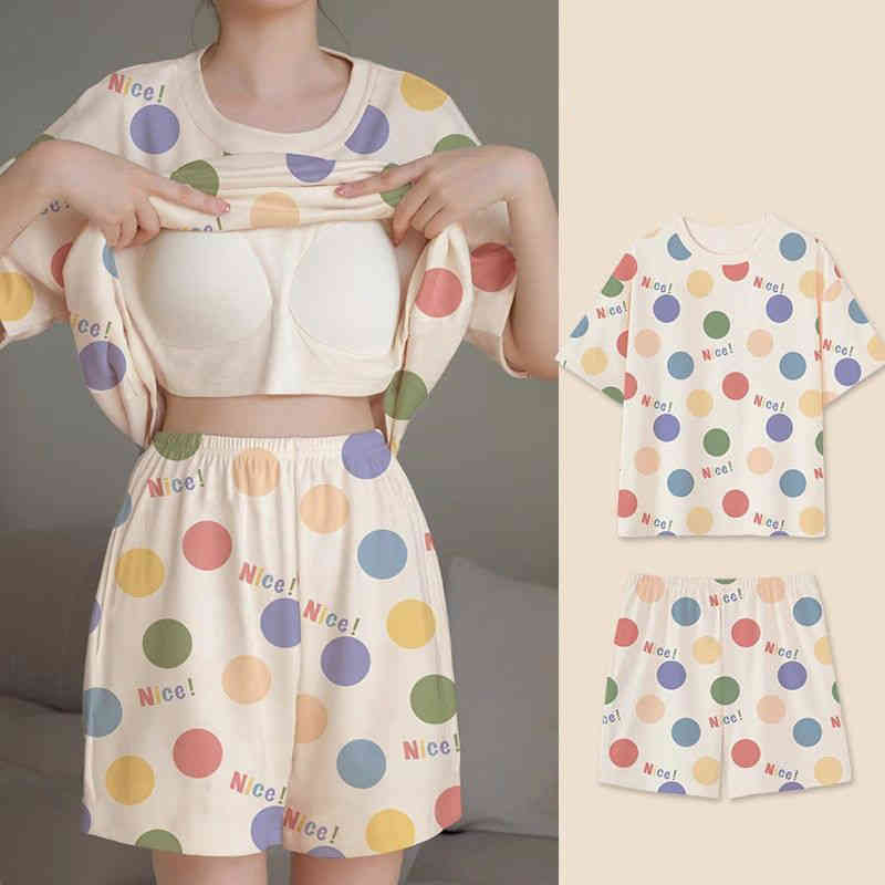 レディース パジャマ カップ付き 半袖シャツ 短パン 部屋着 上下セット ルームウェア 夏 大きいサイズ ウエストゴム 婦人用 涼しい 可愛い 通気性 柔らかい 快適 寝間着 ナイトウェア
