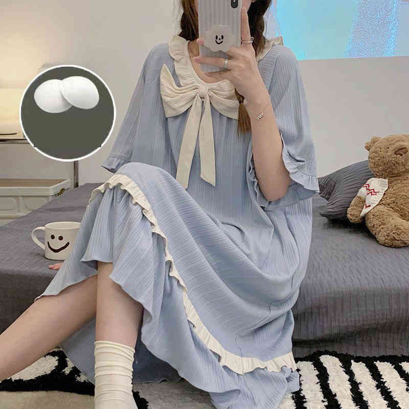 カップ付き ワンピース ルームウェア パジャマ ロング リラックス 半袖 大きいサイズ レディース 部屋着 ナイトウェア カップ取り外しOK