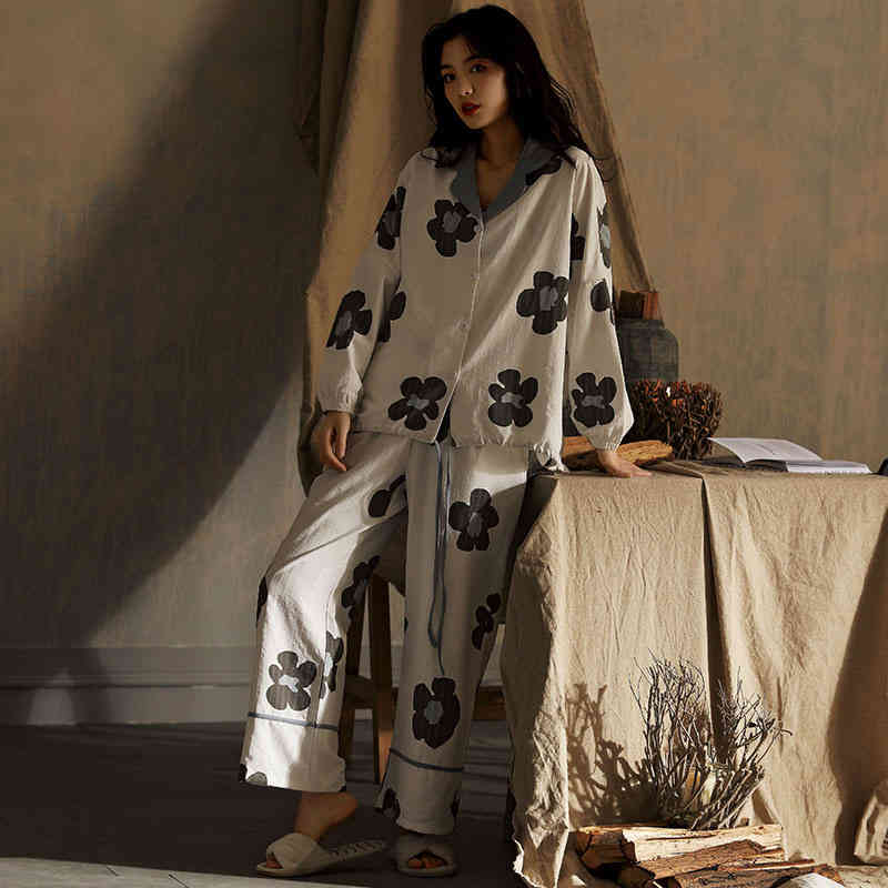 レディース パジャマ 上下セット 綿 大花柄 コットン 長袖 前開き 長パンツ 部屋着 可愛い 袖ゴム 入院